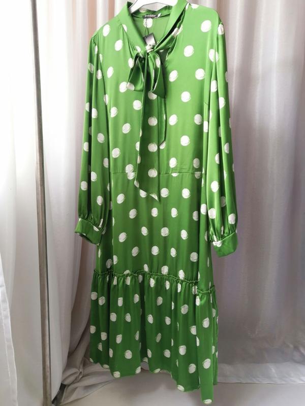 Красивое элегантное шёлковое платье в крупный горох с пышными рукавами по низу воланы галс...