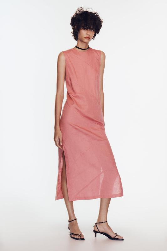В НАВНОСТИ РАЗМЕР S Замеры размер S п.о талия: 44см п.о талия: 40см п.о. бедра: 43см Длина платья: 124см Платье-безрукавка из смесовой хлопково-лляной ткани с круглым воротником и боковыми разрезами внизу. Застегивается на пуговицу сзади и молнию сбоку. 52% ЛЬОН 48% БАВОВНАЯ ПІДКЛАДКА 100% БАВОВНАЯ