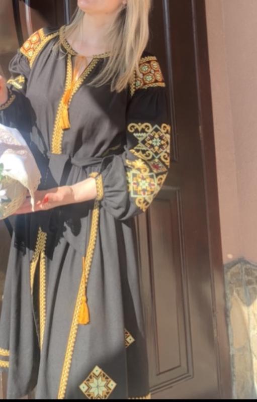 Платье ( машинная вышивка), ткань лен, довольно плотная( держит форму), не просвечивается, черного цвета,миди. Длина платья-112см Рукав- 69-71 На фото ( Мои настройки ОГ93 ОБ94, рост 168) Дополнительно информацию уточняйте.