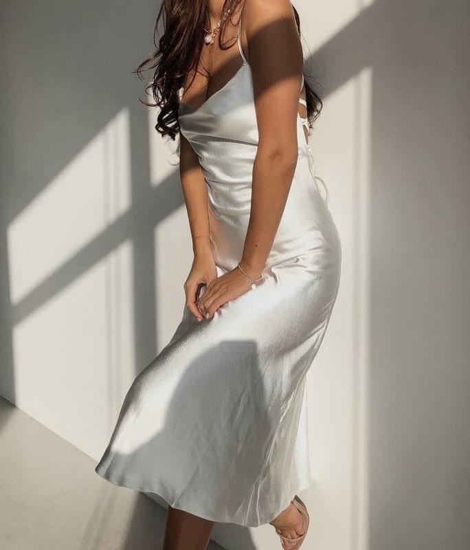 Платье из шелка, молочного цвета. Размер Л, размер регулируется благодаря завязкам, длина от бретель 100 см. Ткань не мнется, не электризуется и очень приятная к телу.