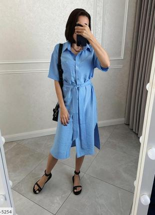 Сукня HV-5254 модель 1875 Розмiри: 50-52, 54-56 Виробник Україна Тканина натуральний жатий льон-котон Склад тканини: льон-60%, бавовна-30%, поліестер -10% Натуральна тканина відмінно пропускає повітря, не парить, приємна до тіла і відмінна в носінні Дуже легке і зручне плаття-сорочка на гудзиках, зав'язується на пояс, можна носити і без нього. Класичний сорочковий воріт, накладна кишеня на грудях. Збоку зручні і ефектні розрізи. Сукня-сорочка це кращий повсякденний наряд для модниць різного віку і більшості типів фігур. Воно універсальне, зручне і стильне Кольори: чорний, блакитний і колір Барбі (рожевий)