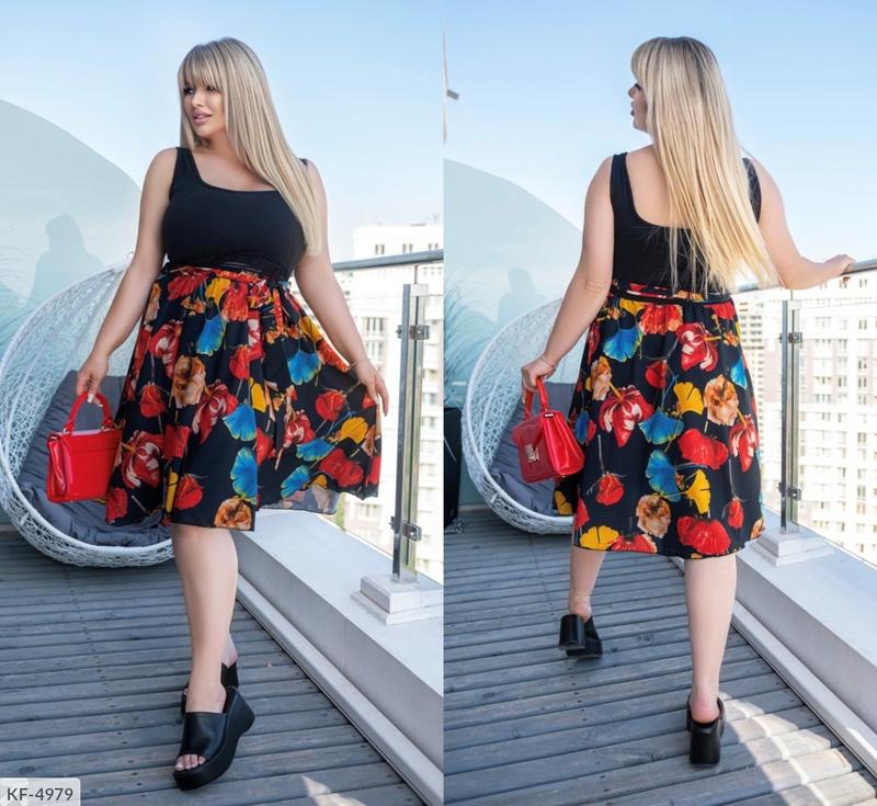 Сарафан KF-4979 Код: 221 Розмiри: 48-50, 52-54, 56-58 Тканина: двонитка, суперсофт. Колір: білий, чорний. розміри: (48-50) ОГ 88-102, ВІД 76-88, довжина 100. (52-54) ОГ 94-110, ВІД 82-96, довжина 102. (56-58) ОГ 102-120, ВІД 90-106, довжина 104. (60-62) ОГ 110-130, ВІД 100-120, довжина 106. Верх легко тягнеться.