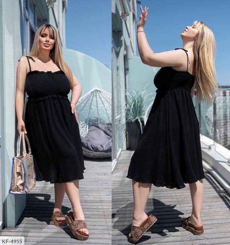 Сарафан KF-4955 Код: 213 Розмiри: 48-50, 52-54, 56-58, 60-62 "Тканина: американська міцна жниварка. Колір: чорний, зелений, малина, бірюза. розміри: (48-50) ОГ = ОТ гумка 80-110, довжина 100. (52-54) ОГ = ОТ гумка 90-120, довжина 104. (56-58) ОГ = ОТ гумка 100-130, довжина 108. (60-62) ОГ = ОТ гумка 110-140, довжина 112. На спинці гумка легко тягнеться.