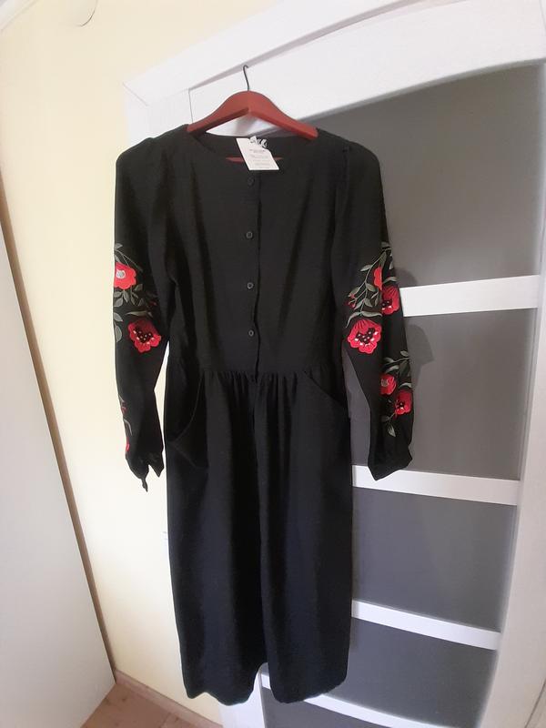 Натуральная ткань, охадная вышивка. Сукня не вдягалась. Имеет два кармана