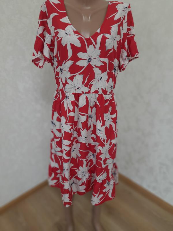 Нежное вискозное воздушное платье.По талии нежные боковые завязочки Замеры: ПП 39 ПГ 57 ПТ 46 ПС 70 Длина 104 Рукав 23