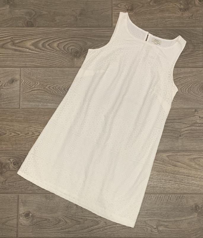 Платье из прошвы Papaya на подкладке. Размер указан 14, но маломерит и подойдет на р. 12/L/40. 100% котон ПОГ 48 см ПОТ 50 см ПОБ 54 см Длина от плеча 88 см K-27