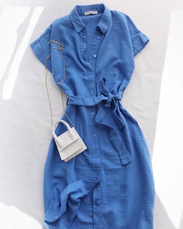 Синее муслиновое женское платье рубашка миди женское длинное платье рубашка из муслина пов...