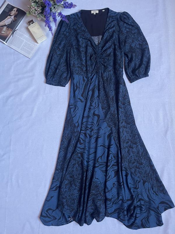 Платье миди очень интересное модель Fat Face Размер по набору 12. Идеальная. Замеры: длина от 125 см до 135 см, ПОГ 53 см, ПОТ 44 см, резинка тянется до 54 см, ПОБ свободного кроя Тканевая вискоза 100%, идет асимметричная внизу, очень красиво ниспадает. 👛 525 грн