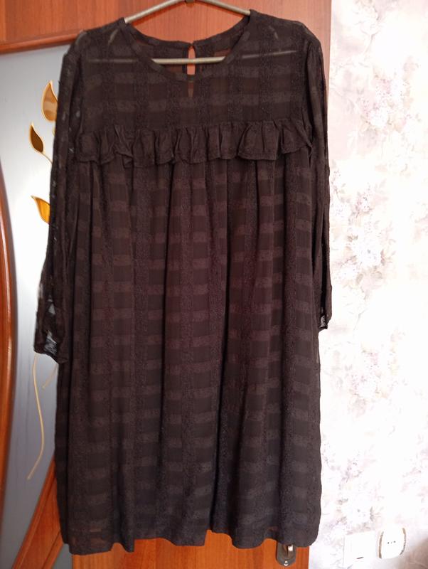 Платье фирменное черного цвета в стиле бохо, спереди небольшая оборка по линии отрезка,ткань немного светит, но есть подкладка натуральная по всей длине, люль рукав и чуточку просвечивает.Очень удобная, можна и под кроссовки.