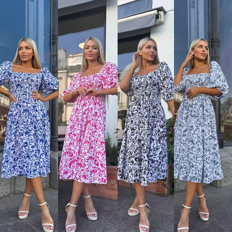 Сукня Размеры: S, M, L, XL Ткань: софт (очень приятный на ощупь, не просвечивается) Цвета: бело-черный, черный, голубой, малина, ментол, синий и хаки По переду резинка, за счет чего идеально садится по фигуре. Супер качество. 📩 720
