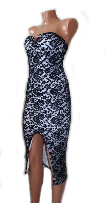 Платье бюстье с глубоким разрезом спереди гипюровое