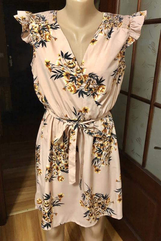 Лёгкое платье в цветах. Горловина мысиком, рукав воланчик. Талия на резинке, есть поясок. Ниже талии- свободного кроя. Длина- 88 см. Ширина (в груди)- 48 см. Бедра- 55 см. В поясе- 45 см. Отправляю Новой и Укр. Почтой