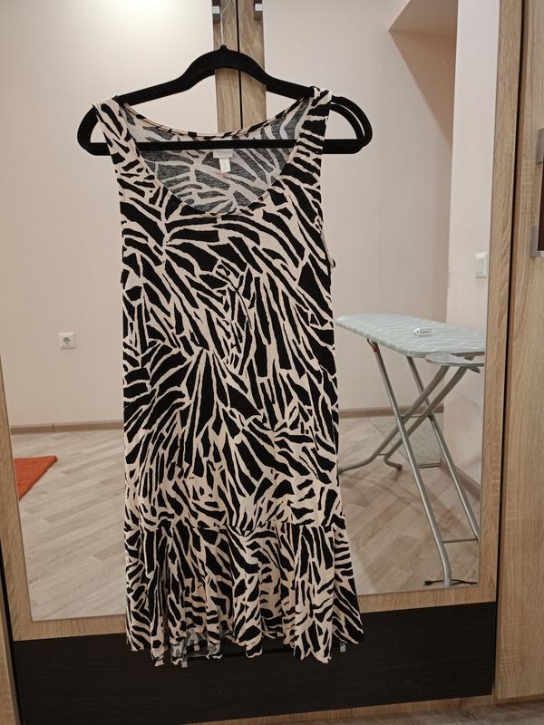 Красивое платье в актуальный принт. Грудь 88, длина 90. Ткань немножко тянется, из 100% вискозы