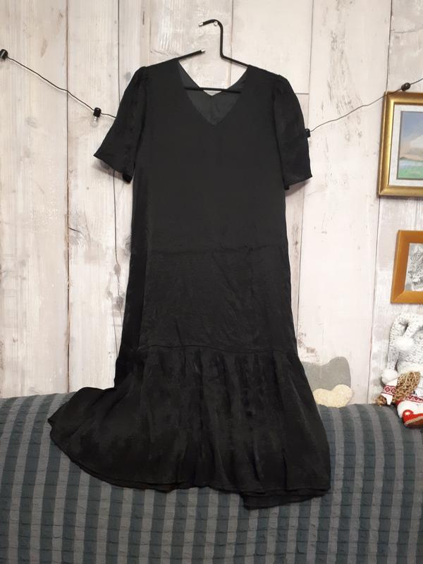 ткань легкая мягкая приятная на ощупь просвечивается слабо имеет блеск насыщенный черный цвет, шелковистая гладкая подкладка к лине отреза длина от плеча 122 пог 56-58 пот 60 поб 69-75 рукав 31 ширина 23 пройма 27 длина оборки 35 плечи 41