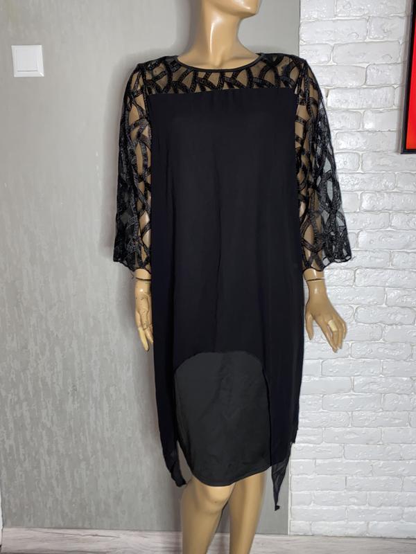 Оригинальное асимметричное Трикотажное платье миди на подкладке платья большого размера батал, XXXXL. Длина 100см, рукав 48см, ПОГ 64см, ПОБ 63см