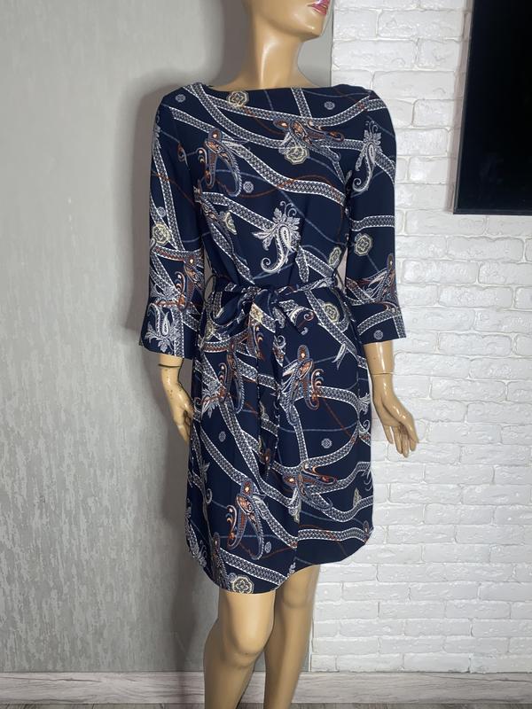 Платье миди с поясом платья в интересный Принт H&M, М-L. Длина 94см, рукав 48см. пОг 50см, ПоБ 54см