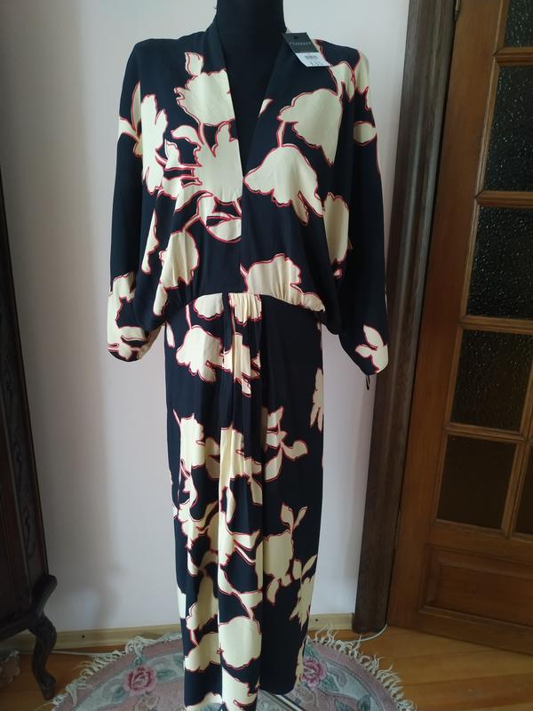 Новое платье миди из натуральной ткани в цветы Peacocks Талия на резинке Замеры полуобхват груди 59 полу охват талии 42-45 полуобхват бедер 60 длина 121