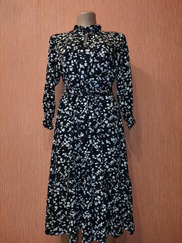 Натуральная ткань. Свободного кроя с ружьем по низу под поясок. Длина платья 105см, длина рукава 47см, полуобхват груди 48см.