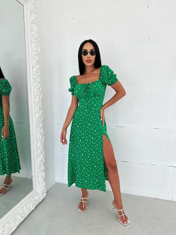 Сукня 😍 РЕАЛ ФОТО/ВІДЕО💯 Модель 201 ▫️Розміри: 42-44, 46-48 ▫️Колір: зелений ▫️Тканина: штапель (бавовна)🔥 Ціна: 540 грн Висока якість 🥰 Опис: Ніжна квіткова сукня, довжина міді, розріз по ніжці, відкрита спинка, на талії зав'язки, що дасть можливість приталити силуэт під себе. Пошита з натурального штапеля, Ідеальний варіант для спекотних літніх днів🩷 Ця модель відправляється тільки по повній передоплаті на карту або накладеним платежем по частковій передоплаті. Уточнюйте наявність потрібного розміру та кольору перед оформленням замовлення 🌹