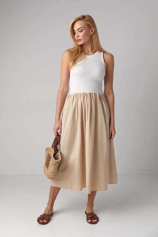 Комбинированное платье миди с пышной юбкой артикул: 9117