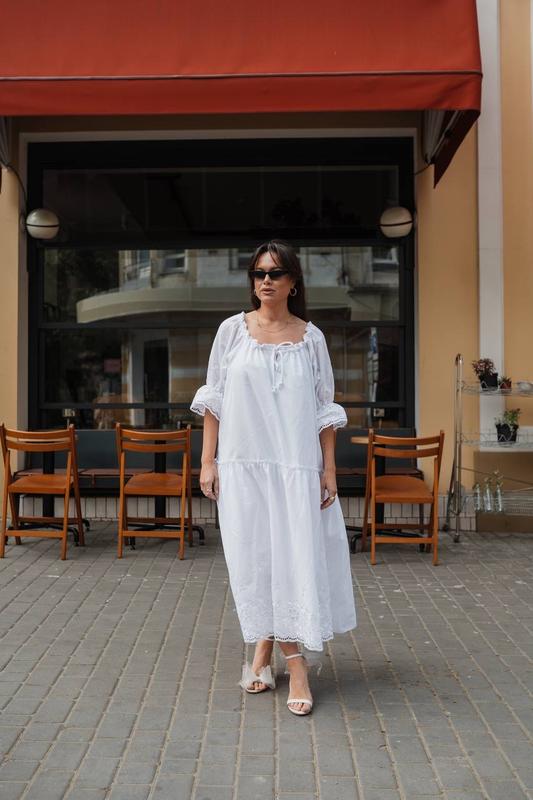 Сукня Арт 05489 💥Цена 1500 грн материал: батист (хлопок) с вышитым рисунком. (Прошва). Длина 135см. Верх на веревочке, можно носить на плечах и спущенные плечи. Под низом есть подкладка из штапеля (натуральная ткань). Есть з'имный пояс-мотузка. Замеры по изделию: 💥2р – на ОГ до 119, ОБ до 132 💥3р - на ОГ до 130, Об до 140 💥4 р - на ОГ до 148, ОБ до 167 Размеры: 48-54, 56-62, 64-70