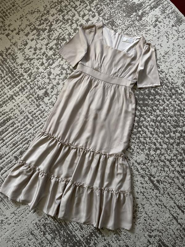 Очень красивое летнее молочное платье от американского бренда, с подкладом, тканная плотная не просвечивает, цвет очень красивое и нежное, платье в новом состоянии, не одевала ни разу,размер ххс по наборке, но будет на хс и с. Замеры: Длина 113 см Рукав 29 см Плечи 32 см Пояс 36 см