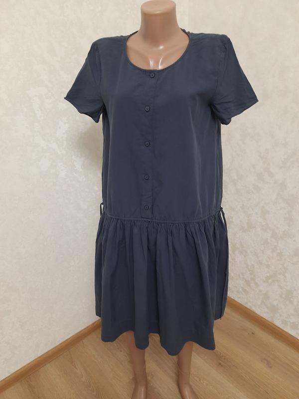Платье свободного кроя на подкладке. Есть карманы. Замеры: ПП 41 ПГ 53 ПТ 59 ПС 65 Длина 102 Рукав 20