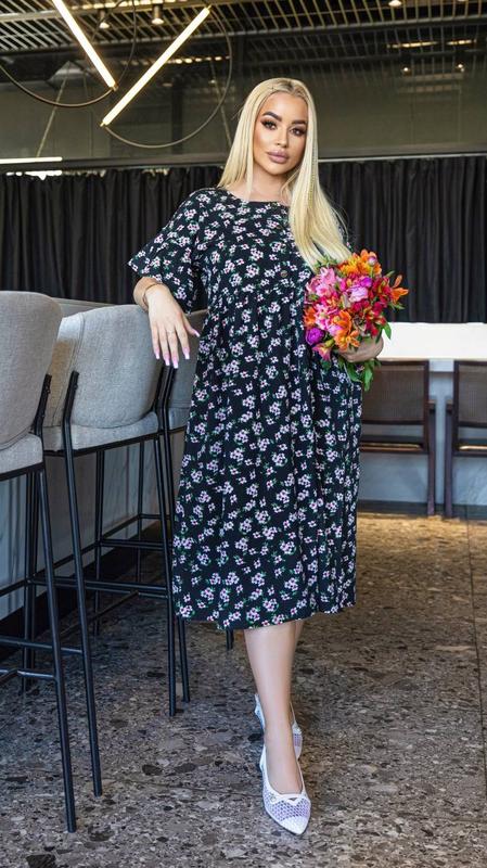 Идеальная 👗😍Сукня 🫶❤️ #002 Цена 1300 грн Размеры 48-52,54-58,60-64 Цвета Черный принт лео, черный цветок, белый фон малиновый цветок, голубой розовый цветок, серый с цветком Ткань турецкий софт хорошего качества 👌 ткань не парит, легкая, идеально на лето 👍 Прикрывает ручку, скрывает животик, с карманами на пуговицах, подходит также и для беременных 💕 Замеры 👉 48-52 Ог 110-112 от і об оверсайс 54-58 Ог 118-120 вот и оверсайс 60-64 Ог 130-132от и оверсайс Длина платья 116 см На модели блондинка 1 размер 48-52 Параметри Ог 103 от 90 об 106 Рост 164 см у обоих Блондинка 2 размер 54-58 Параметри Ог 115 от 90 об 118