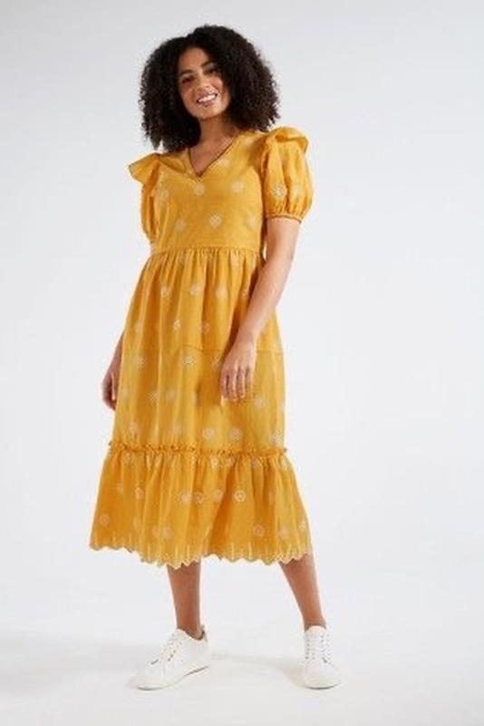 Хлопковое ярусное платье-миди в стиле вышиванки/платье прошва с воланом в этно бохо стиле