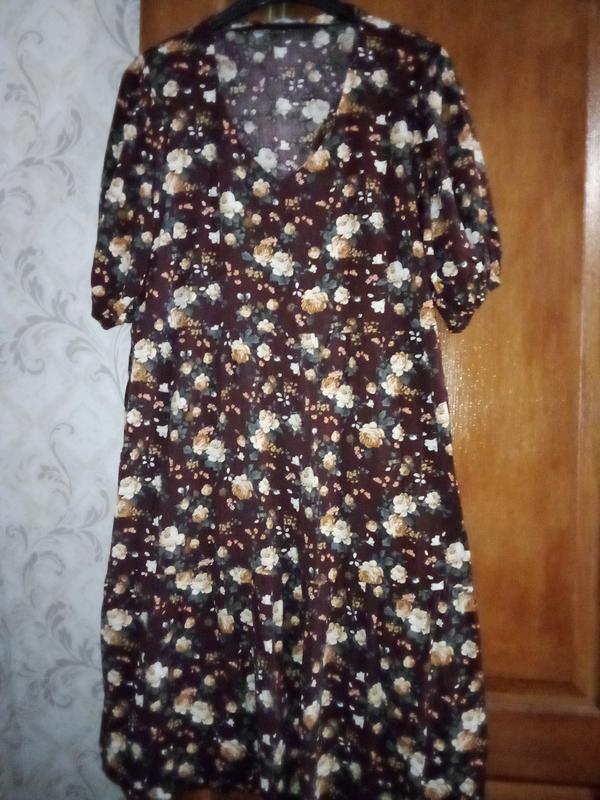 Гарна, літня сукня, тканина штапель. Сукня нова, але відірвалась іі загубилась бірка. Плече 11 см, довжина рукава 35 см, ПІГ 58-59 см, ПІТ 57 см, ПІС 75 см, довжина від плеча 108 см, Від талії пошив двома ярусами. Колір коричневий. Залишилось останне, ціна знижена, щоб довго не очікувало.