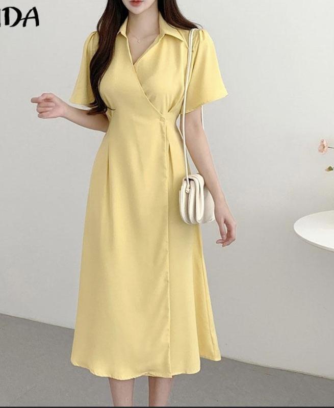 Красивое платье на запах в спокойном желтом цвете! Подойдет на размер Л Хл не большой! ПОГ 47см ПОТ 45см (регулируется запахом) ПОБ 55см длина изделия 126см плечи 38см Стан идеален! Очень приятный к телу)