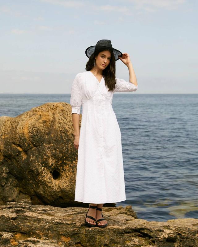 Женское платье из прошвы миди летнее с пуговицами с коротким рукавом белое 2186