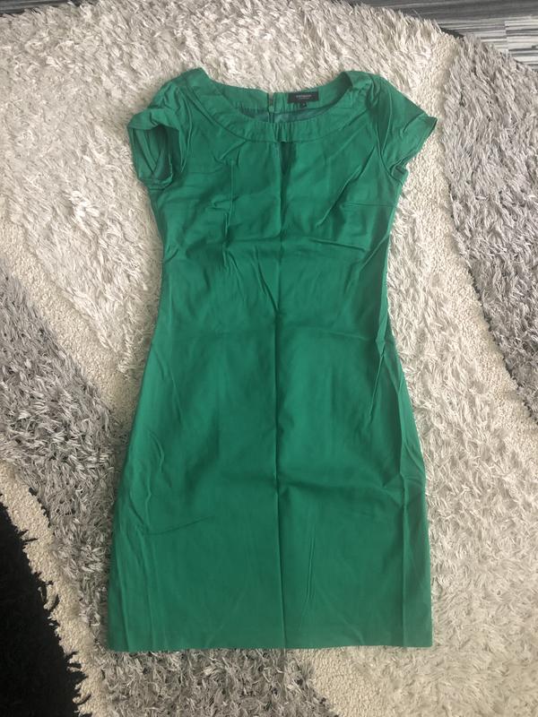 Яркое зеленое платье, размер 36, на подкладке, сзади застегивается на замок. Длина 90, ПОГ 43, ПОБ 48, плечи 38.