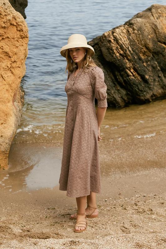 Летнее платье из прошвы – это идеальное сочетание элегантности и комфорта. Изготовленное из изысканной прошивки, это платье имеет застежку на пуговицы, что придает ей очарование. Прямой и свободный крой обеспечивает легкость и свободу движений, что делает ее идеальным выбором для летнего сезона. Конструктивные элементы включают V-образный вырез, пышные рукава и подкладку, подчеркивающие ее уникальный стиль. Для ухода за платьем рекомендуется ручная стирка при температуре до 30°C. Длина изделия варьируется в зависимости от размера: SM –*****; 121 см, **** – 122 см, *****XL – 123 см, а длина рукава соответственно: SM –*****; 41 см, **** – 42 см, *****XL – 44 см. Это платье станет отличным дополнением вашего летнего гардероба, сочетая в себе стиль и удобство в каждой детали. Характеристики: < ul> - Материал: прошва - Цвет: коричневый - Фурнитура: пуговицы - Фасон: прямой, свободный - Сезон: лето - Декоративные элементы: ******>выточки на талии, полуоткрытая спина - Конструктивные элементы: V-образная горловина, пышный рукав, подкладка - Комплектация: платье - Уход за одеждой: ручная стирка до 30° - Длина изделия: - SM: 121 см - ****: 122 см - *****XL: 123 см - Длина рукава: - SM: 41 см - ****: 42 см - *****XL: 44 см Заказ можно оформить через Вайбер Смотрите также: Пиджаки, жилеты, кардиганы Одежда больших размеров Платья Костюмы Чтобы следить за новинками и получать дополнительные скидки, присоединяйтесь: ✔️ Телеграмм ********* ***/*********/" ******="******">******** ***/*********/" ******="******">********