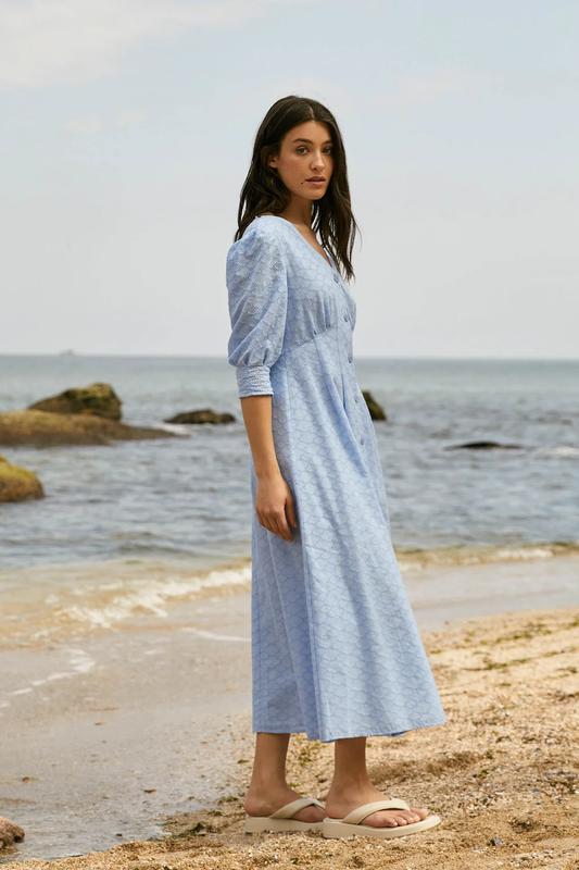 Летнее платье из прошвы – это идеальное сочетание элегантности и комфорта. Изготовленное из изысканной прошивки, это платье имеет застежку на пуговицы, что придает ей очарование. Прямой и свободный крой обеспечивает легкость и свободу движений, что делает ее идеальным выбором для летнего сезона. Конструктивные элементы включают V-образный вырез, пышные рукава и подкладку, подчеркивающие ее уникальный стиль. Для ухода за платьем рекомендуется ручная стирка при температуре до 30°C. Длина изделия варьируется в зависимости от размера: SM –*****; 121 см, **** – 122 см, *****XL – 123 см, а длина рукава соответственно: SM –*****; 41 см, **** – 42 см, *****XL – 44 см. Это платье станет отличным дополнением вашего летнего гардероба, сочетая в себе стиль и удобство в каждой детали. Характеристики: < ul> - Материал: прошва - Цвет: голубой - Фурнитура: пуговицы - Фасон: прямой, свободный - Сезон: лето - Декоративные элементы: ******>выточки на талии, полуоткрытая спина - Конструктивные элементы: V-образная горловина, пышный рукав, подкладка - Комплектация: платье - Уход за одеждой: ручная стирка до 30° - Длина изделия: - SM: 121 см - ****: 122 см - *****XL: 123 см - Длина рукава: - SM: 41 см - ****: 42 см - *****XL: 44 см Заказ можно оформить через Вайбер Смотрите также: Пиджаки, жилеты, кардиганы Одежда больших размеров Платья Костюмы Чтобы следить за новинками и получать дополнительные скидки, присоединяйтесь: ✔️ Телеграмм ********* ***/*********/" ******="******">******** ***/*********/" ******="******">********