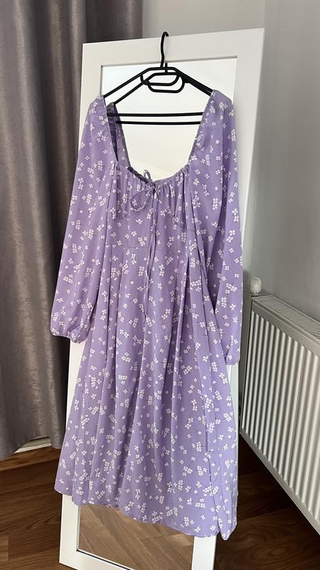 Женское платье длины миди в цветочный принт В лавандовом цвете Размер: L Ткань: турецкий софт (приятный на ощупь, не просвечивается) Застегивается на потайную молнию Платье новое, желаемый не подойти размер