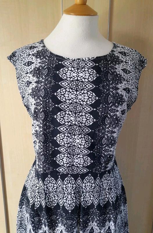 Стильное платье/ платье абстрактный принт с имитацией сетевое в базовых черно-белых цветах от известного британского бренда MAINE NEW ENGLAND, продающийся в магазинах Debenhams. Debenhass является одним из ведущих универмагов, широкий ассортимент которых включает мужскую, женскую одежду, детские товары, нижнее белье, аксессуары, косметику и парфюмерию, а также товары для дома и сувениры. В универмагах Debenhams представлено уникальное сочетание собственных линий одежды, международных марок и задействованных брендов. К собственным коллекциям относятся такие бренды как Red Herring, Mantary, Maine New England, Debut и Bluezoo. Вот уже 15 лет компания Debenhams активно развивает сотрудничество с известными модными дизайнерами, которые создают эксклюзивные коллекции специально для универмагов сети. Debenhams также создают отдельные коллекции с участием именитых модных дизайнеров, среди которых Метью Уильямсон (Matthew Williamson), Джулиан Макдональд (Julien Macdonald), Генри Холланд (Henry Holland), Джеф Бэнкс (Jeff Banks), Джаспер Конран (Jasper Conran) (Betty Jackson), Джон Роша (John Rocha). К задействованным брендам Debenhams относятся Coast, Jacques Vert, Oasis, Phase Eight, Wallis и Warehouse. Премиальное качество ткани 52% хлопок 48% вискоза, без синтеза. Ткань прочная и плотная, очень легкая. Подкладка 100% хлопок (тонкий батист). Это платье - идеальный выбор для жаркого летнего дня. Ткань, "дышащий", не электризуется, легкая и приятная к телу. Платье классического кроя А - силуэта, длиной миди. Круглый вырез горловины. Отрезная линия талии. Застежка на молнию и специальный крючок. Молния находится на сбоку. Идеально подойдет на фигуру 18 UK или 46 EU размера. Состояние новое, без бумажной этикетки, без дефектов. Размеры: плечи спущенные 49 см грудь 58 (116) см талия 50 (100) см стегна 60 (120) см общая длина 108 см В магазине еще много уникальных вещей, в том числе от люксовых брендов https://shafa.ua/uk/member/nngoncharova. Доставка Укр-почтой или Новой почтой. Предварительная оплата на карточку Монобанка Обмен и возврат вещей не предусмотрен