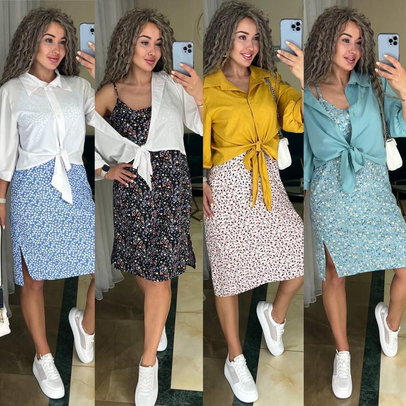 Стильный женский костюм В комплекте рубашка и платье Размеры 42-44,46-48,50-52 Ткань : платье Софт Турция Рубашка рабочие пуговицы, с объемными рукавами! очень стильное сочетание Платье длины миди, универсальный костюм, можно надевать под разную обувь и носить отдельно) Цена: 625 грн