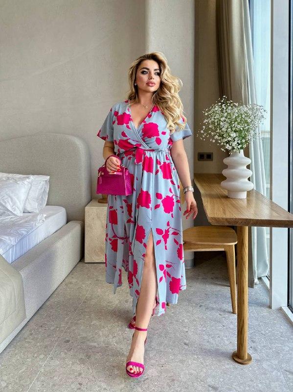 Сукня Тканина: софт Розміри: 50-52; 54-56; 58-60; 62-64. Кольори: сіро-рожевий, чорно-білий. бро