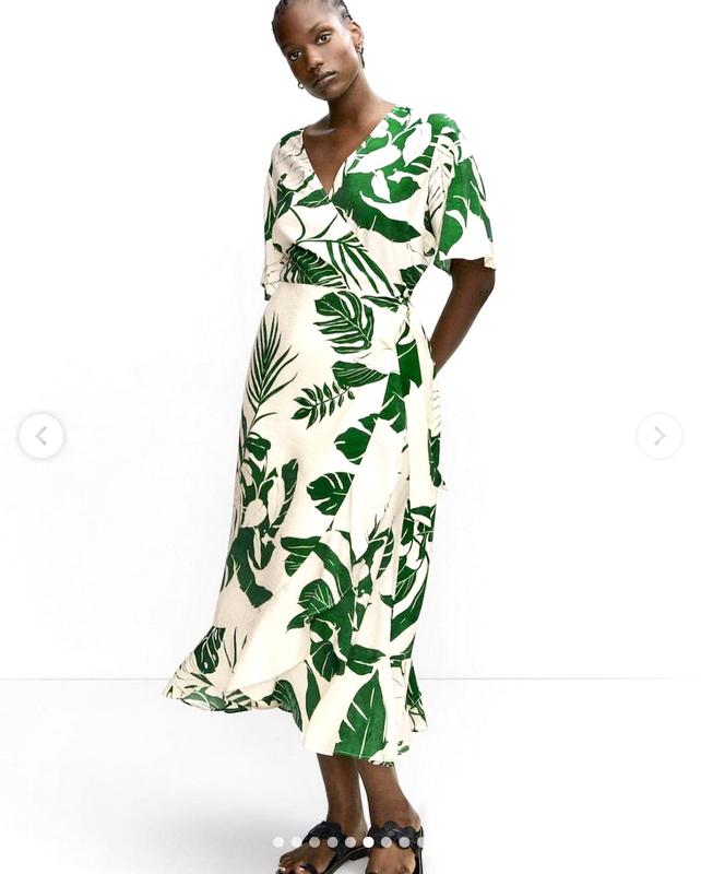 Платье манго , модель на запах, новое без бумажной бирки, размер М Струящаяся ткань. Перекрещенный V-образный вырез. Короткий рукав. Боковая застежка на кулиску. Подол с рюшами. Рекомендация по уходу: Барабанная сушка запрещена, Глажка до 110°C, Деликатная стирка при температуре воды до 30 °C, Отбеливание запрещено, Химчистка запрещена Состав: 83% Вискоза, 17% Полиамид Страна дизайна: ИСПАНИЯ