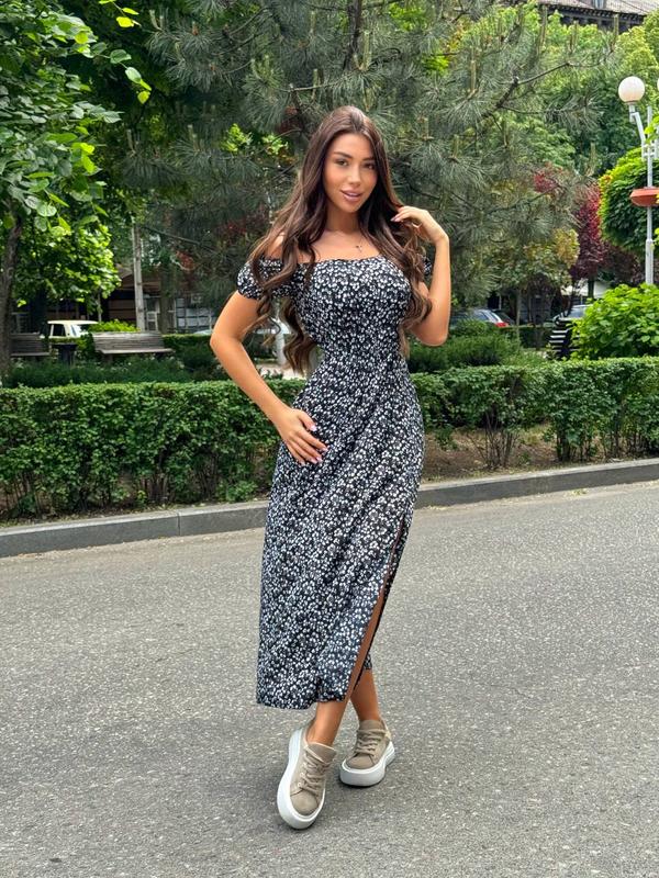 Фото и видео наживо Сукня 🔹Ткань: Софт принт ( черный, синий) Креп-жатка (белый) 🔹Размеры: 42-44, 46-48, 50-52 🔹Цвета: белый, черный, синий Невероятное цветовое сочетание 💓 Элегантное платье с разрезом на ножке и с резинкой на талии. 100 % будет фаворитом в твоем гардеробе. Цена: 599грн