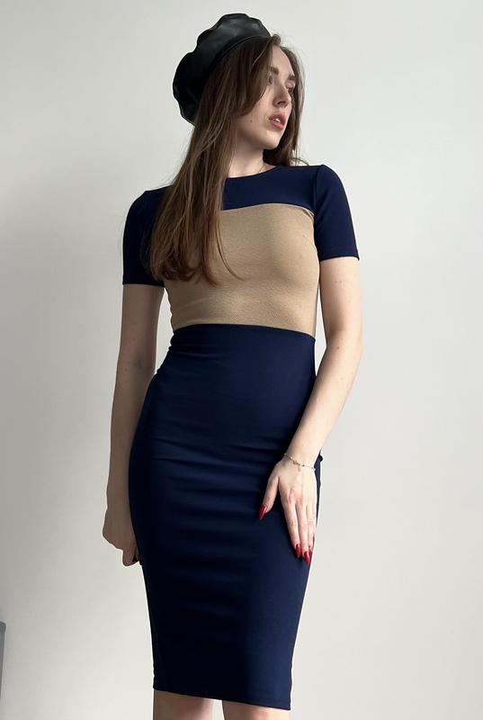 Бежево-синее платье миди Gepur Размер s Полуобъем груди 35 см Полуобъем талии 30 см Длина от плеча 111 см Классическое платье, очень хорошо облегает) Ткань хорошо тянется Состояние идеальное, новое, но без бирки