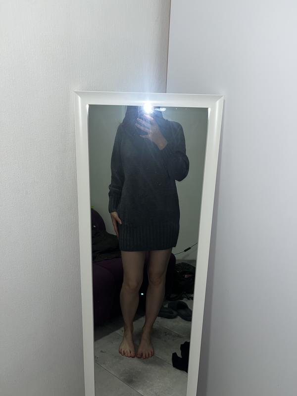 В`язаное платье серого цвета, с горлышком будто в виде гольфика.