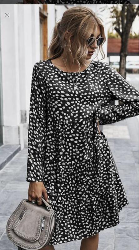 Легкое ярусное платье А-силуэт длинной до колена с круглым вырезом . Состояние идеальное,. Длина 94 см,, ОГ 48 см, длина рукава 60см, в бедрах свободно. Размер S/M