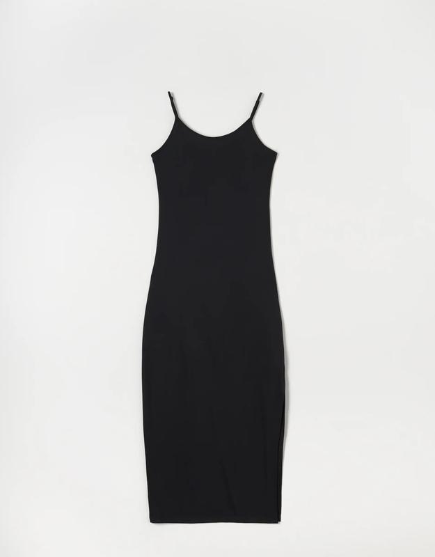 Базова чорна сукня міді довге плаття з розрізом облягаюча сукня skims sinsay чёрное облега...