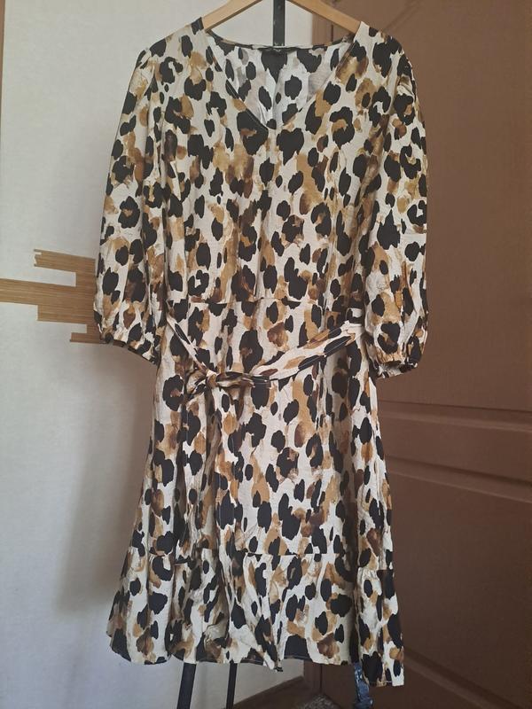 длина по спинке 95 см, закрывает колени отрезное по талии до талии 41.5см юбка 54,3 см, внизу широкая оборка 16 см, в отрез по талии вшита резинка только на спинке плечи 41.5см рукав от плеча 49 см пышный " фонарик", присборенный на плече и собранный на резинку вместо манжета -15см, хорошо тянется талия 48.5см, тянется к 57-58см есть пояс, 2 шлевки на талии