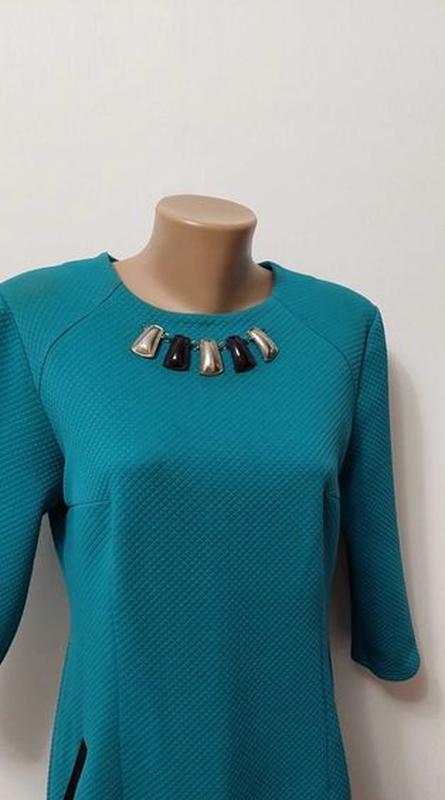 Платье изумрудного цвета Alva р 50 хорошее состояние носила на работу структурированная ткань длина 99, пог 52, рукав идет как 3/4 длина 45