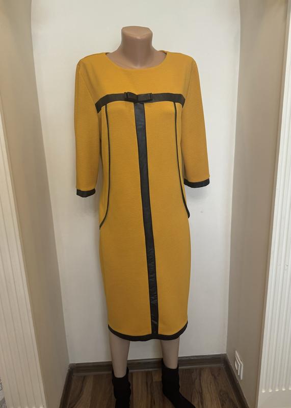 Лаконичное платье. Тканина тягнеться. Есть дефекты - виден на фото. В общем образе дефектов не видно. ПОГ - 50 ПОБ- 50 Длина 103 Рукав - 40