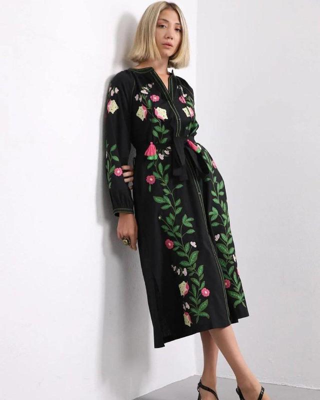 Колоритное платье миди с вышивкой, украинное платье вышиванка, этно платье с вышивкой
