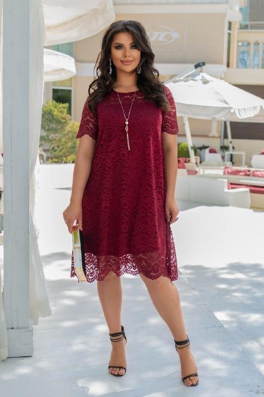 Розмір: 48-50, 52-54, 56-58. Колір: бордо, рожевий, електрик, темно синій. Тканина про-во Туреччини, відмінної якості: гіпюр, підклад трикотаж. Елегантна сукня вільного силуету з гіпюру. Позаду на гудзику. Виміри: РОЗМІР : 48-50 Сукня: дл. вид. 95 см, рукав 24 см ОГ-110 см., ОС-від 118 см. РОЗМІР 52-54: Сукня : дл. вид. 97 см, рукав 25 см. ОГ-116 см, ОС-від 124. РОЗМІР 56-58: Сукня : дл. вид. 99 см, рукав 26 см. ОГ-122 см, ОС-від 132 см. ит